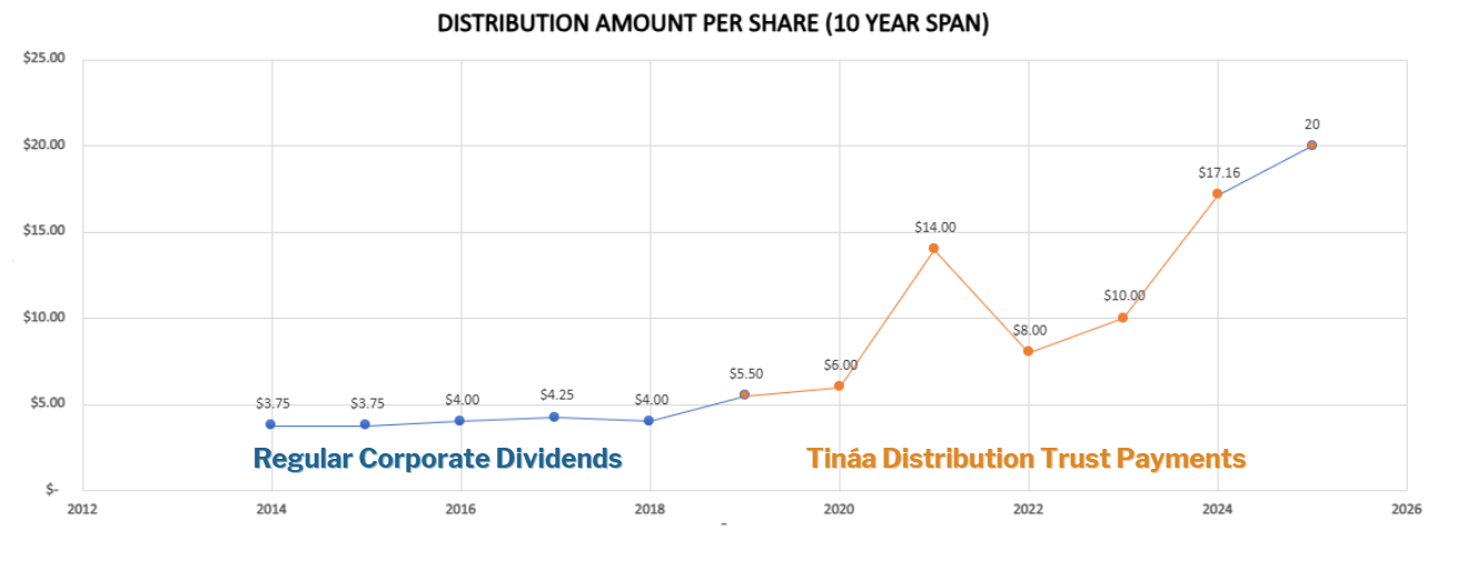 The Tináa Distributions Trust was created to deliver immediate shareholder benefits while leveraging tax efficiencies.